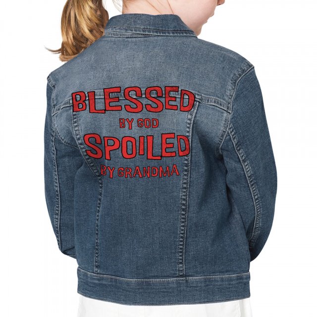 Spoiled by Grandma Hooded Denim Jacket for Kids – Funny Jean Jacket – Word Art Denim Jacket for Kids